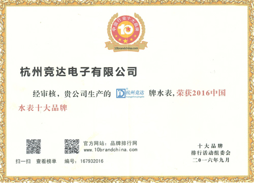 The results of the ranking of the most comprehensive and largest brands on the Internet, hosted by the Brand Ranking Network, have been announced. "Hangzhou Jingda" has been listed in the "Top Ten Chinese Water Meter Brands in 2016" list!